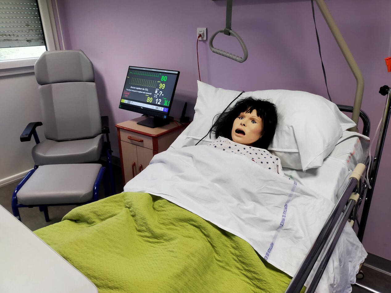 Le centre de simulation de l'IFSI est équipé de deux chambres de simulation et d'une salle de soins reconstituée. Dans chaque chambre, une régie dédiée permet de piloter le mannequin en toute discrétion derrière une vitre sans tain. Une salle de débriefing permet de visionner les simulations en direct et sa disposition modulable s'adapte au nombre d'apprenants pour apporter les meilleures conditions pédagogiques.