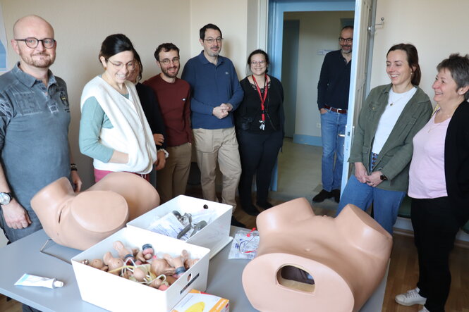 Les apprenants découvrent le matériel d'entraînement à l'examen gynécologique.